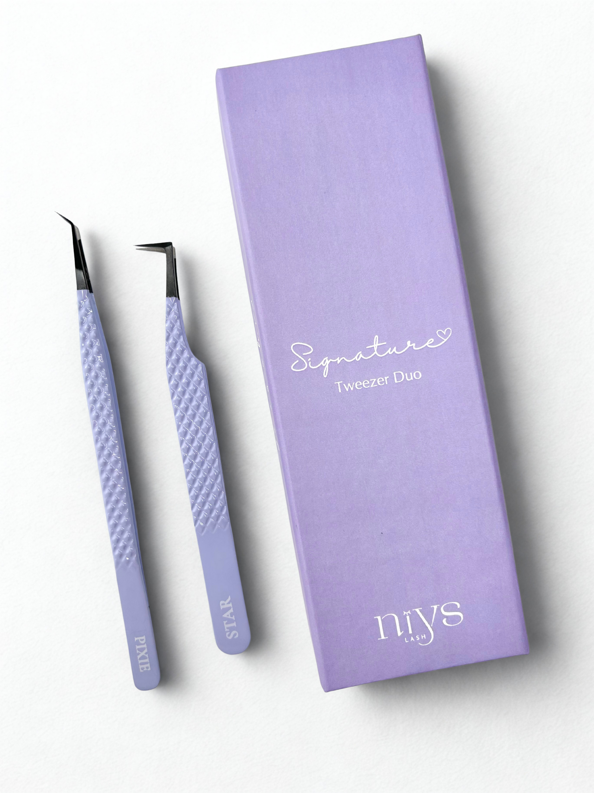 Meet your go-to duo. One Volume and one Isolation tweezer. Lightweight comfort and fiber tip technology for flawless grip. No more slipping or struggling. The fine tip ensures precise pick-up and effortless placement every time. Light in hand, strong on lash= gentle pressure for your wrist and hand, yet securely holds every lash.